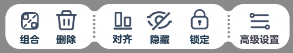 左侧工具栏包含了蛋码入口和辅助线、多选、复制等常用功能。