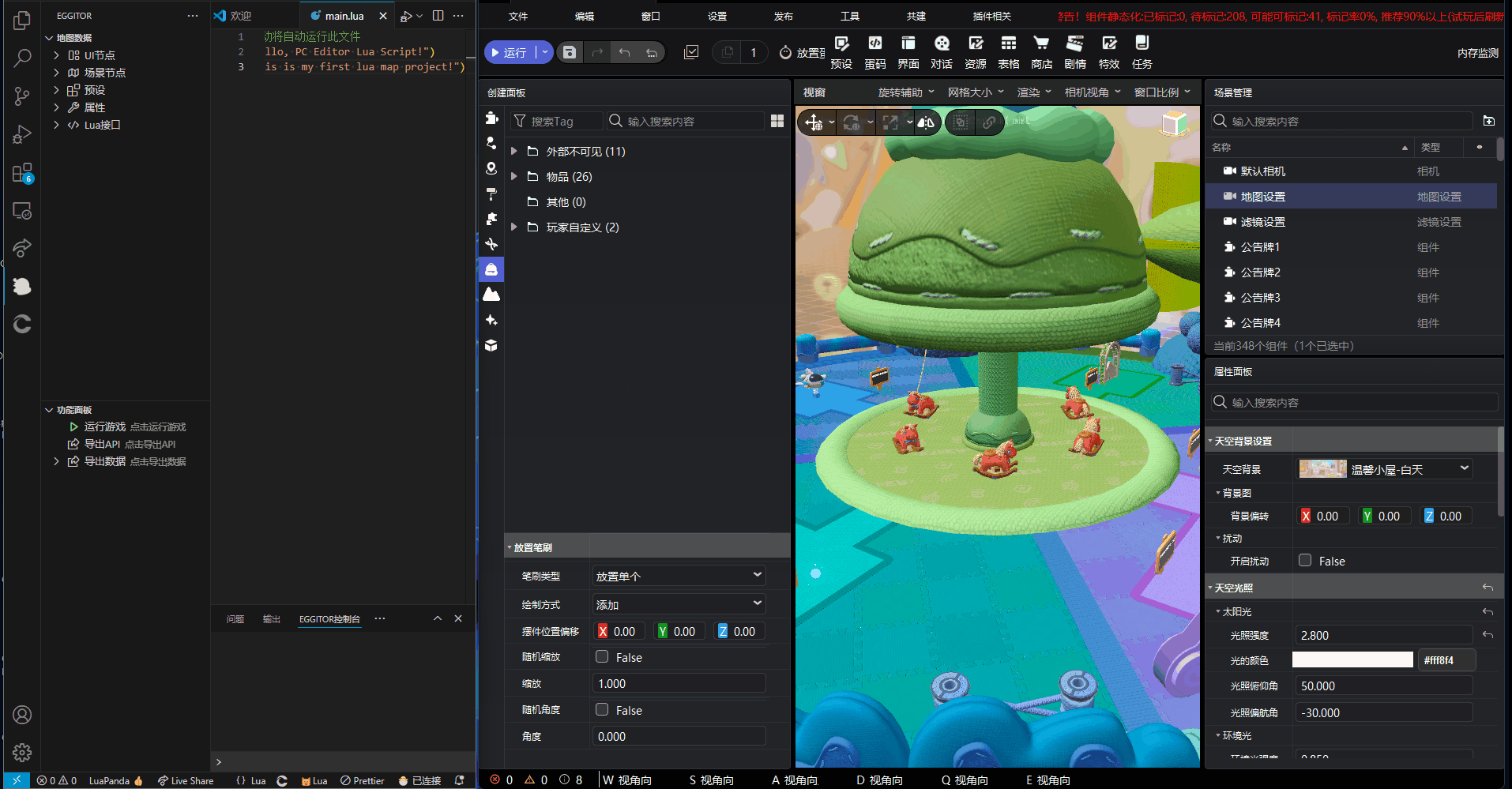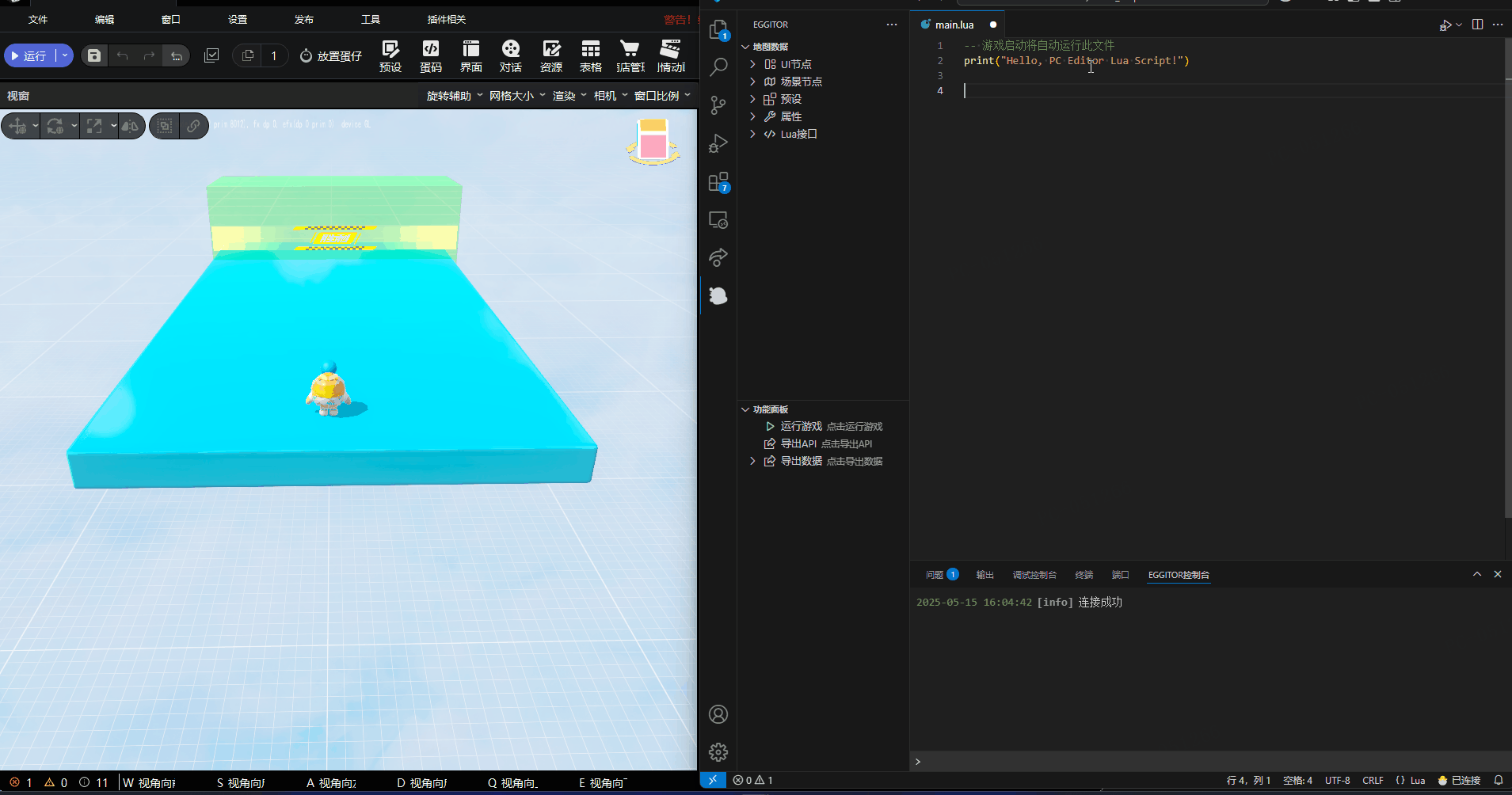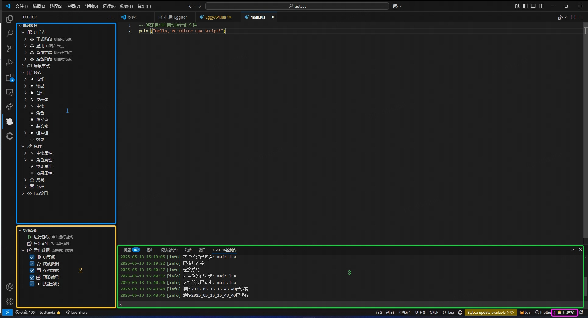 - 展示PC编辑端的场景对象、UI对象、预设、存档、成就、属性、Lua给PC编辑端蛋码接口